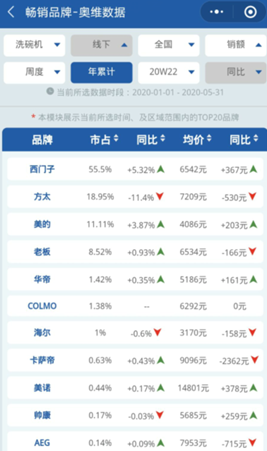 這個(gè)品類就是洗碗機(jī)。釘科技注意到,奧維云網(wǎng)數(shù)據(jù)顯示,今年1-5月洗碗機(jī)線下市場銷量top5品牌分別是:西門子、美的、方太、老板、海爾,市場份額分別為52.13%、16.71%、16.15%、8.01%、1.94%。